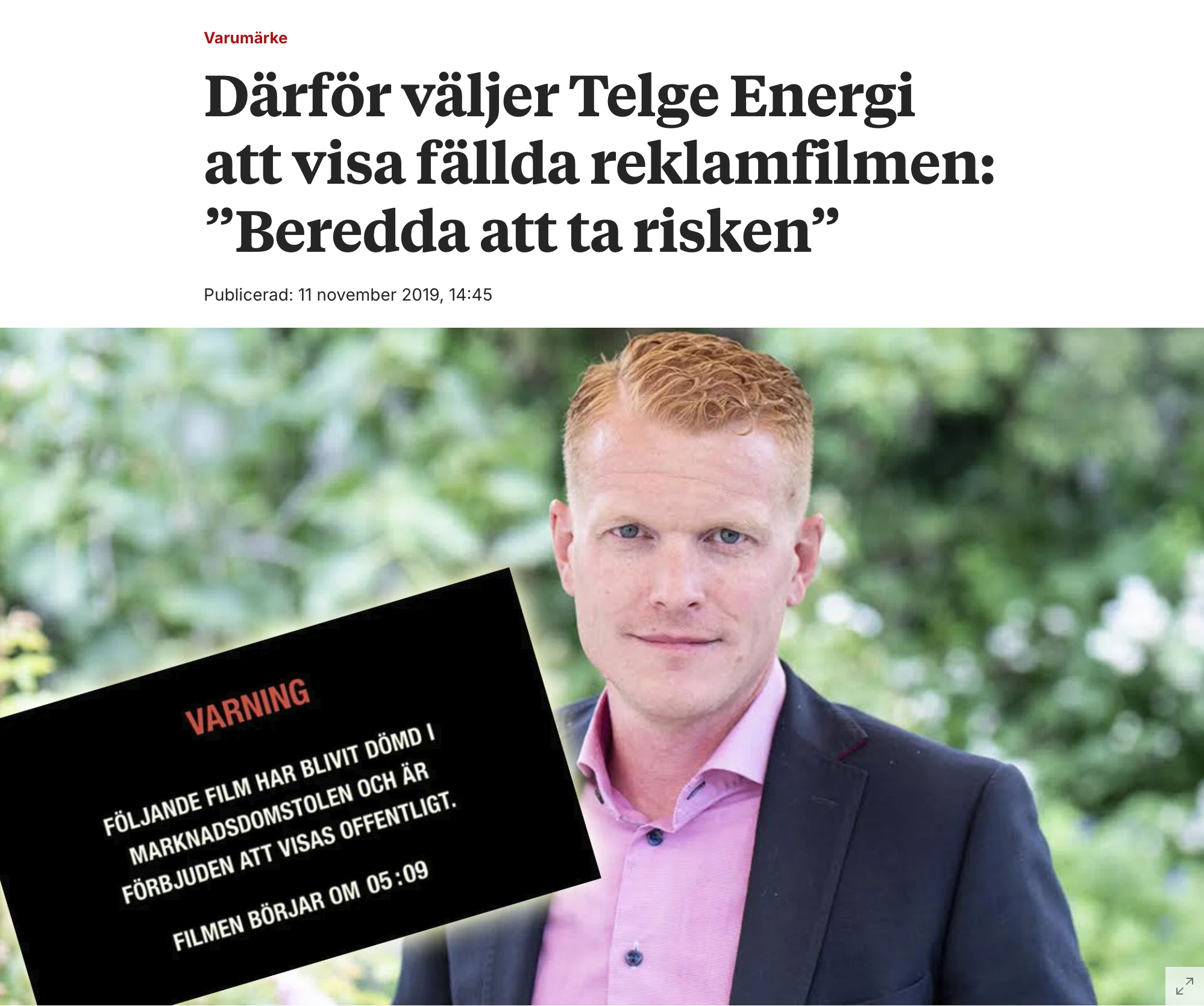 Ett exempel på en kampanj som fick Sverige att lyfta på ögonbrynen var när man under hösten 2019 släppte en reklamfilm som var förbjuden att visa. Reklamfilmen som man visade hade 2014 fällts i marknadsdomstolen för att den hade som budskap att förbränningen av kol påverkar klimatet. Något som vi och hela forskarvärlden idag vet stämmer, men då fanns det osäkerhet i forskningen.